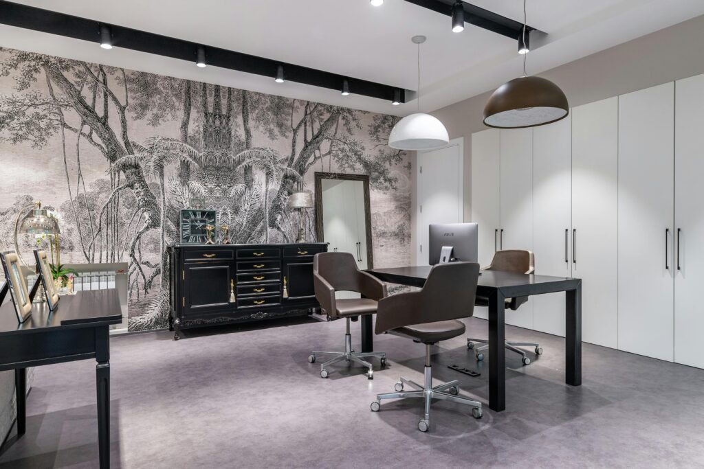 Smooth wallpaper installation providing clean alignment and elegant decorative styling.